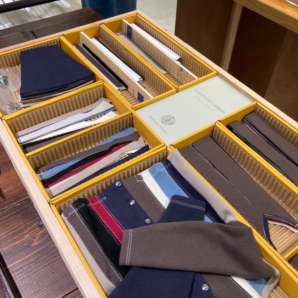 阪急うめだ本店8Fにある「CURLY&Co.」ではカスタマイズカーディガンのサンプルの種類も豊富。