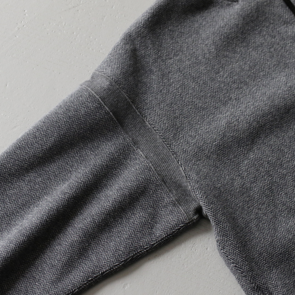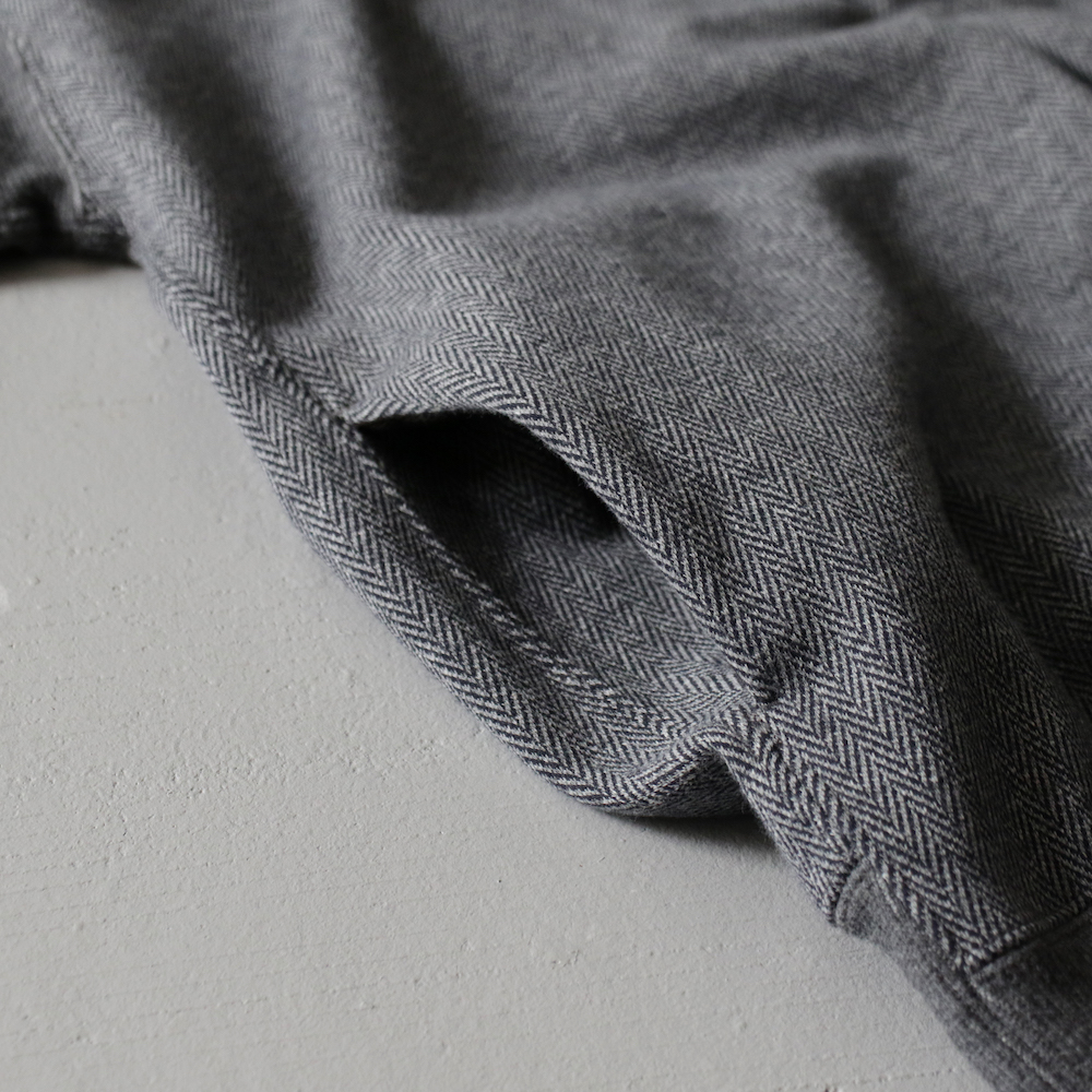 細かいヘリンボーン柄が特徴的なアイテムで、全体的なディテールは比較的シンプル。