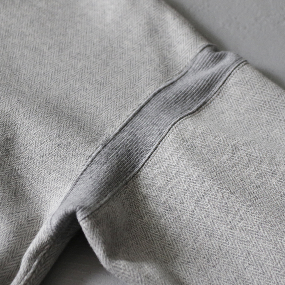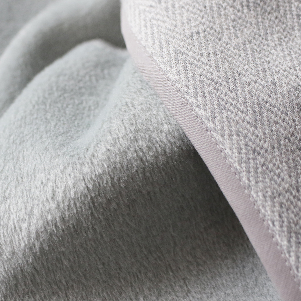 表面はミニヘリンボン柄、肌側はとても気持ち良く、ベロアのように滑らかに起毛させたもの。