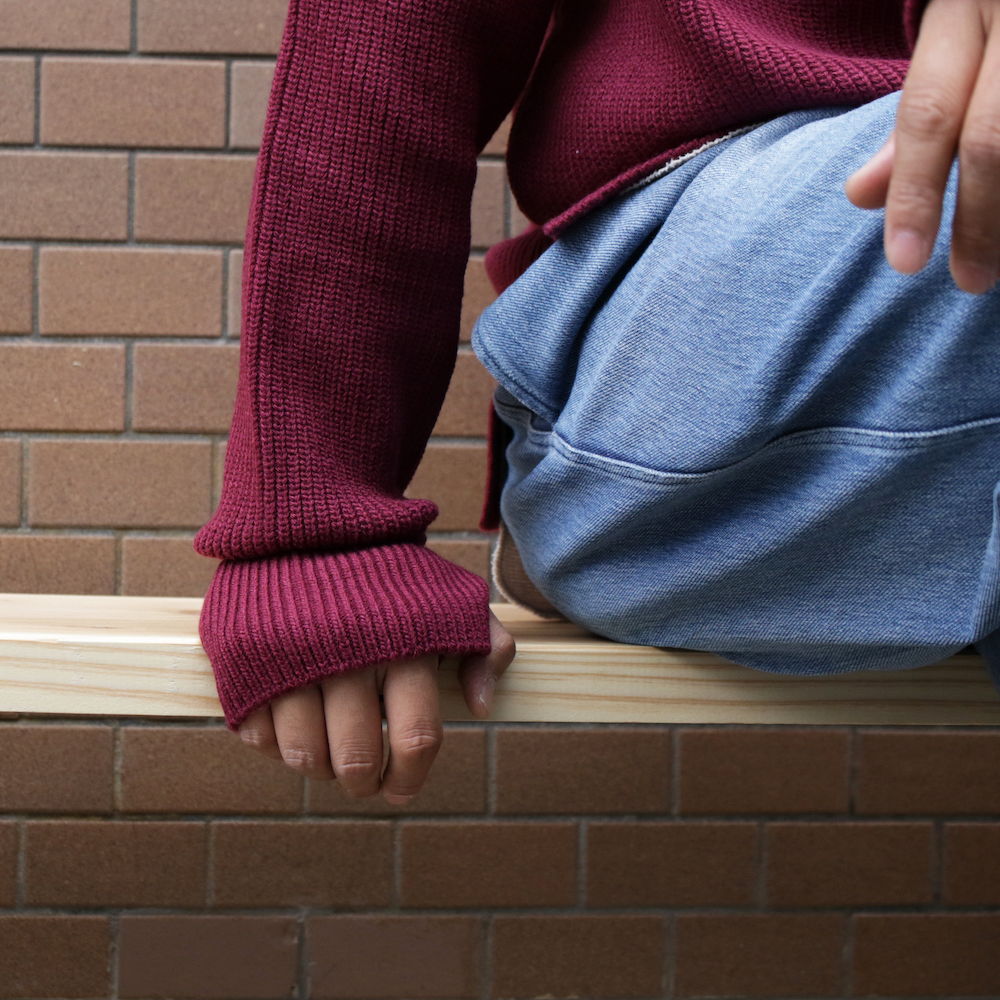 まず「首」がつく部分を温めるべくタートルネックのインナーは欠かせません。肌側の滑らかフワッと生地が気持ち良く一度きたら脱ぐのが惜しい、こたつみたいなBLANKET TURTLE-NECK P/Oをチョイスしました。