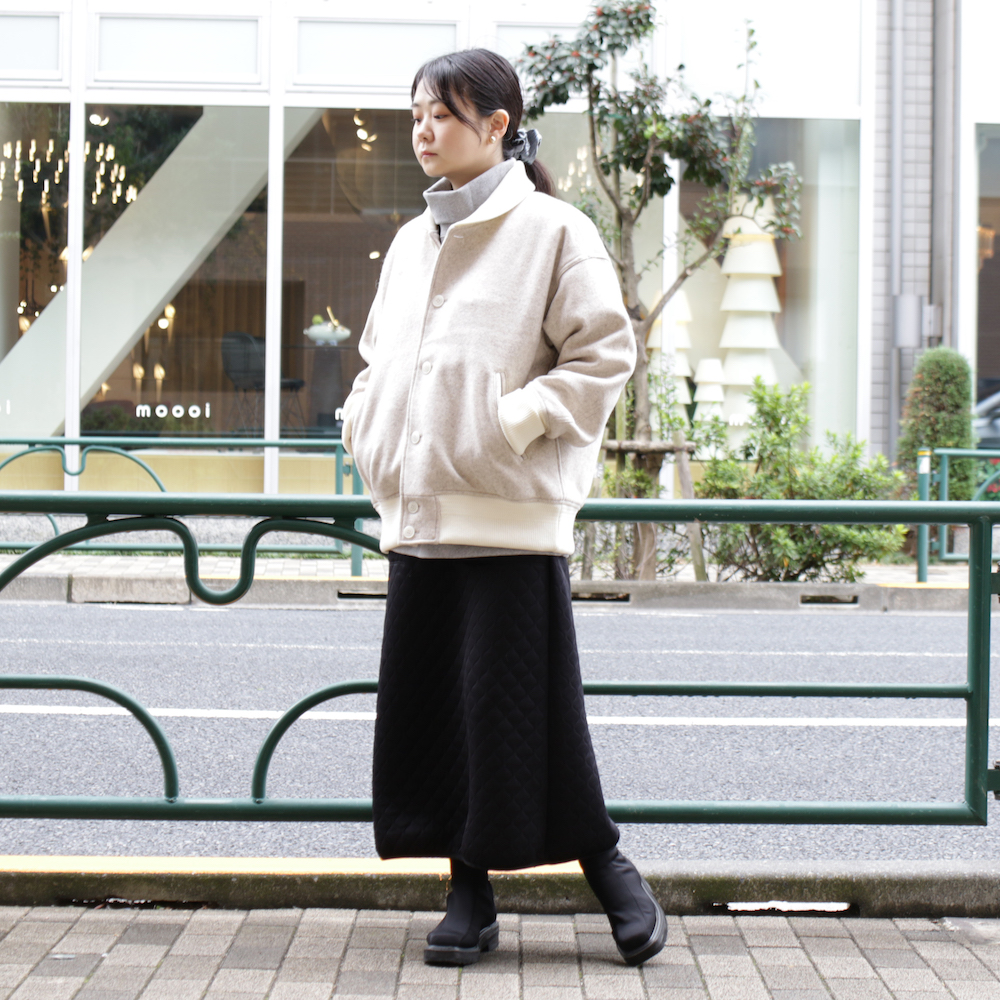そして冷え性な私は早速RECYCLED BISHU WOOL VARSITY JACKETも選んでしまいました。
