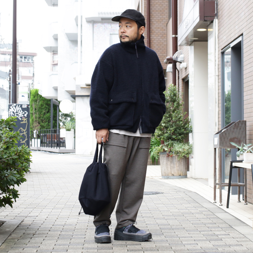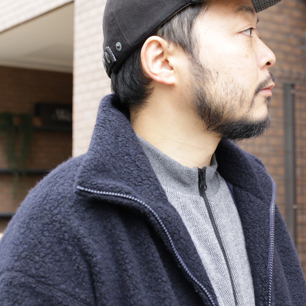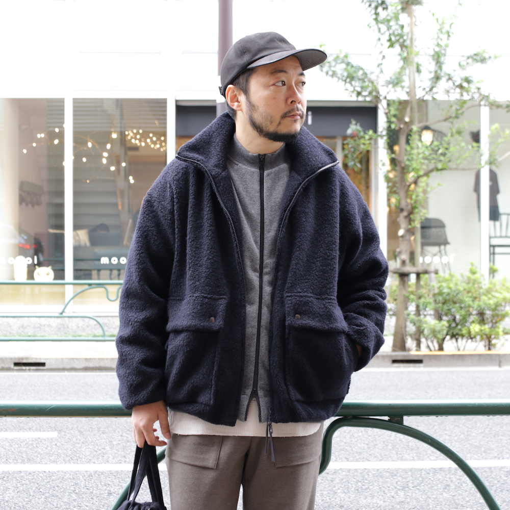 こちらのコーディネイトでご注目いただきたいのは、BLANKET ZIP-UP JACKETです。