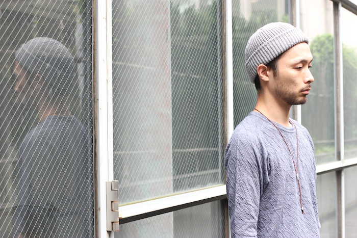 TERRAのネックレスはTheWeft別注カラーをチョイスし、コーディネートにアクセントを付けています。