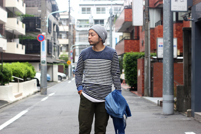 4種類の異なる生地を切り替えた LS CONFUSED BORDER TEEはインナーに映えますね。