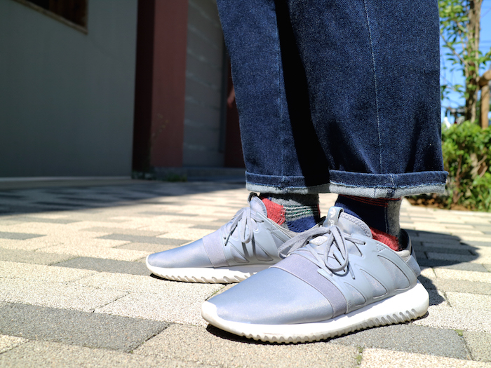 ワイドなシルエットとアンクルカットの丈感は足元のコーディネートが大変楽しくなります。