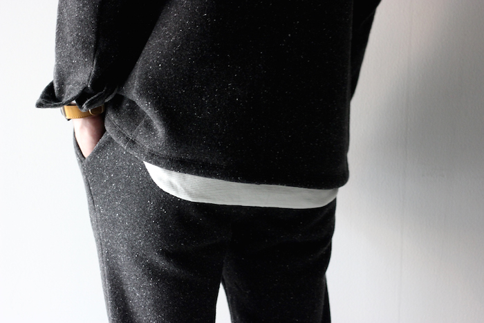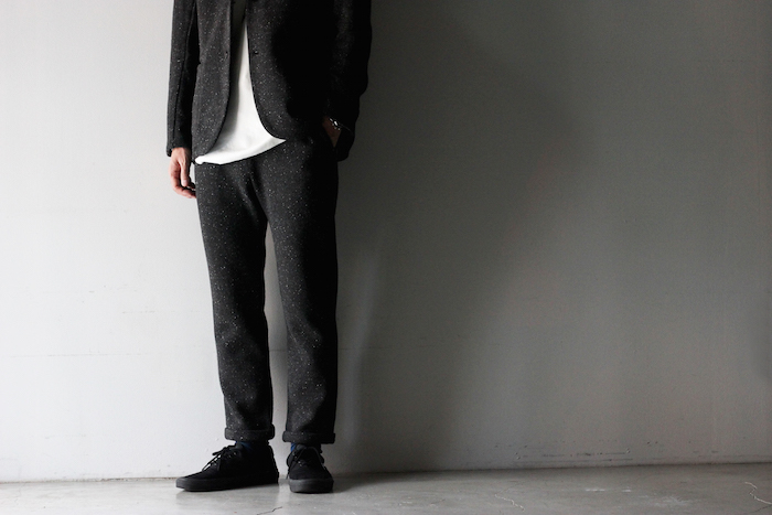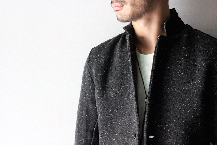 味わい深い表面感と起毛された裏地によるふんわりとした着心地が非常に秋冬らしいアイテム。