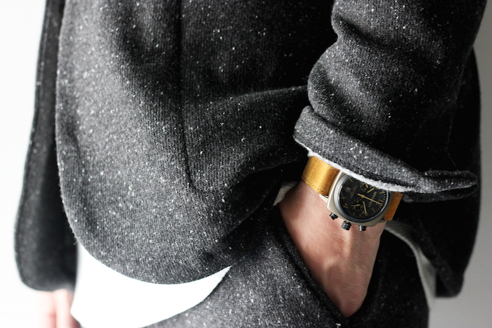 その特徴的な生地感を活かすかのように、無駄なディテールが省かれたスッキリとしたデザインからは、