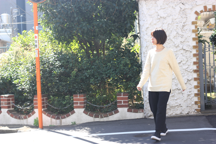 サイズを上げて、少しゆったりとルーズに着こなすのも女性の特権。