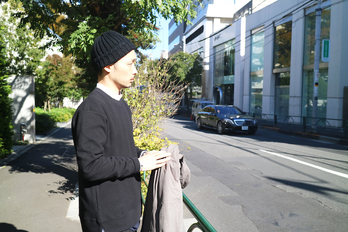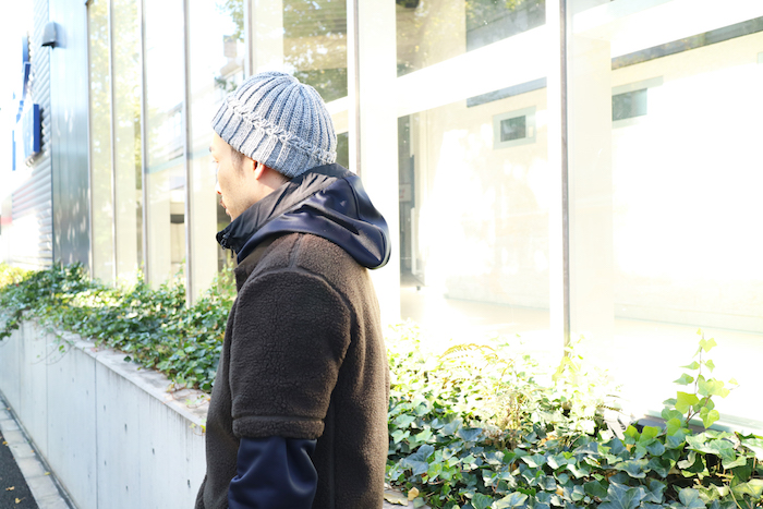 先ほどのスタイリングと同様に、CLOUDY KNIT CAPを使用しています。
