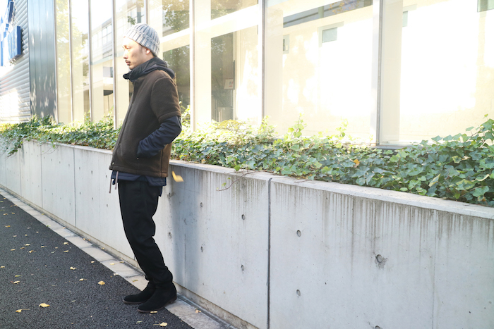 が、本日はタイプの違うネックウォーマーを使ったスタイリングから。