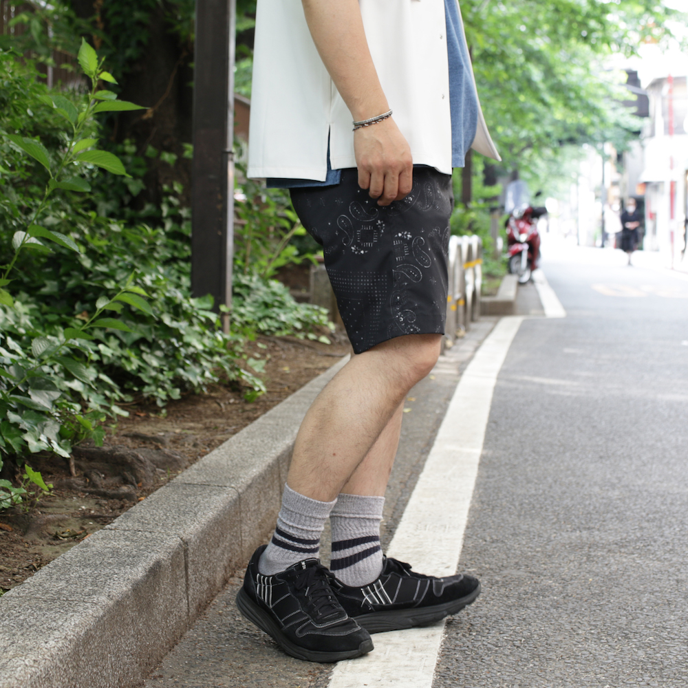 ボトムスにはonoma.labのバンダナ柄ショーツを合わせ、開放的な雰囲気でまとめています。