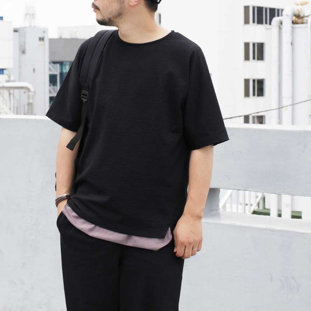 生地に凹凸があるので、BLACKのカラーでも軽やかで涼しい印象を見せてくれるでしょう。